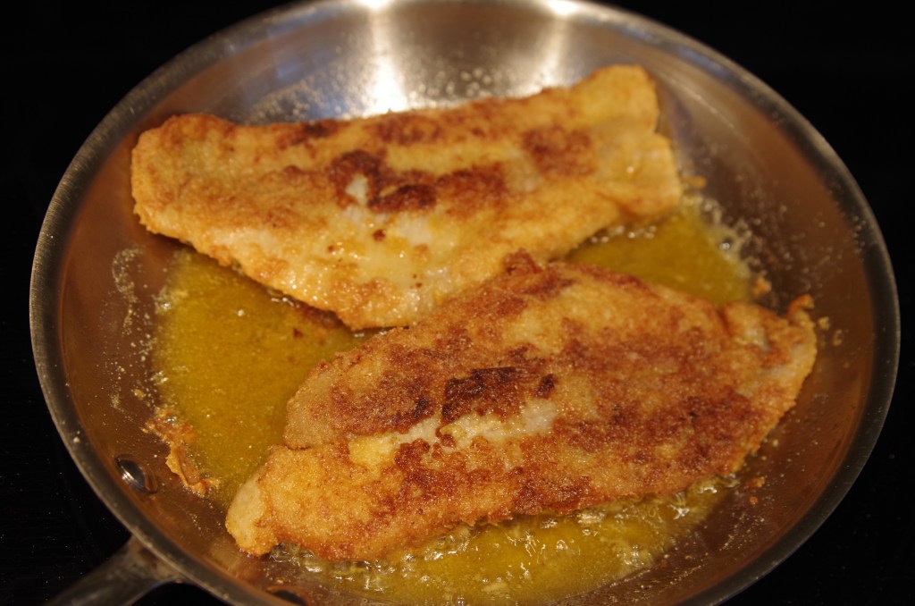 Heat your oil in a deep frying pan to 350F-360F and fry the fish approximately 5 minutes each side.
